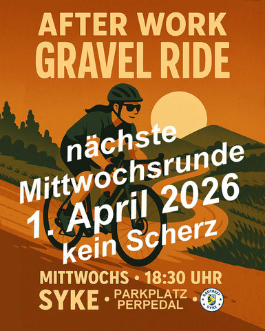 Eingeladen sind alle, die Lust auf eine Feierabendrunde in entspannter Atmosphäre haben. Voraussetzung ist ein Gravel- oder Mountainbike und ein Fahrradhelm. Eine vorherige Anmeldung ist nicht erforderlich einfach vorbeikommen und mitfahren!